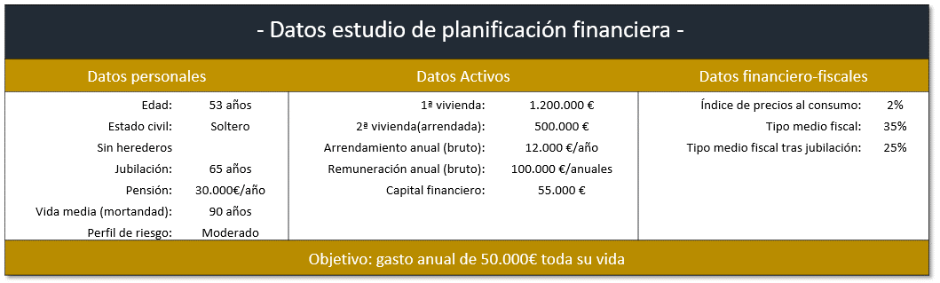 En este caso del cliente «x», el objetivo financiero es gastar 50.000 euros anuales durante toda la vida (el efecto inflación del 2% siempre se debe tener en cuenta).
