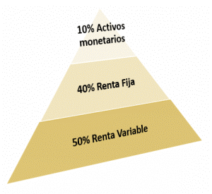 - Cartera conservadora: 10% activos monetarios, 40% renta fija y 50% renta variable (rango mínimo de renta variable 25% y 85% resto de activos).