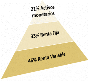 - Cartera agresiva:5% activos monetarios, 20% renta fija y 75% renta variable (rango mínimo de renta variable 25% y máximo 100%).